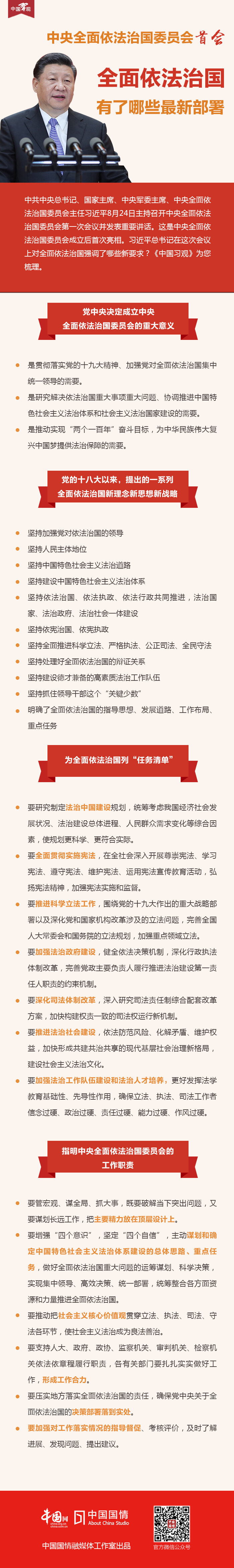 中央全面依法治国委员会首会 全面依法治国有了哪些最新部署?