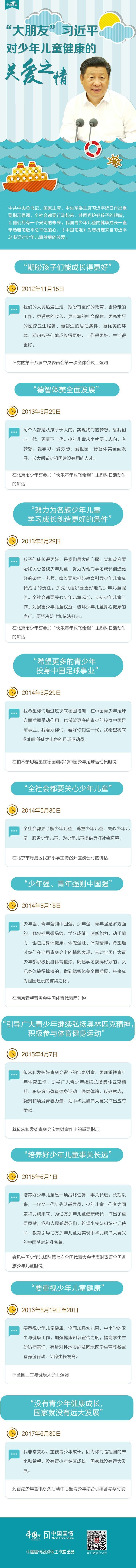 “大朋友”习近平对少年儿童健康的关爱之情。