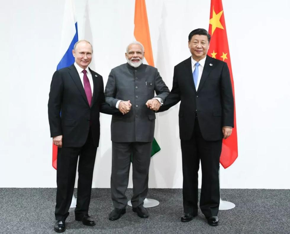 ↑6月28日,习主席在大阪出席中俄印领导人会晤,同俄罗斯总统普京、印度总理莫迪就当前国际形势、重大国际和地区问题、三方合作深入交换意见。新华社记者谢环驰摄